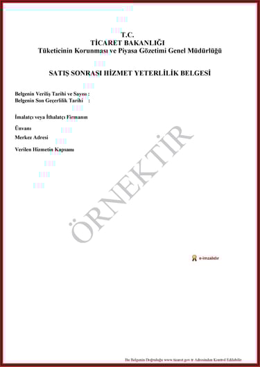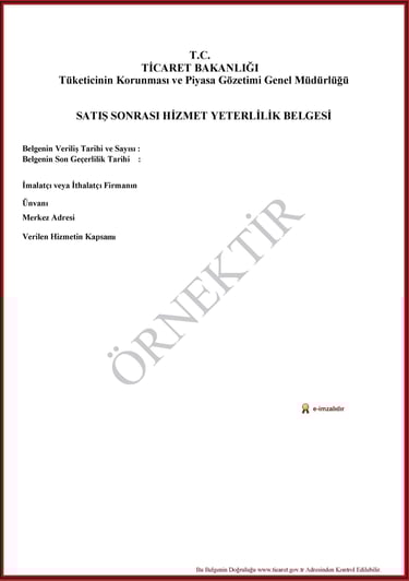 Satışı yapılan ürünler için, satış sonrası servis, bakım ve onarım gibi hizmetlerin belirli standartlara uygun olarak verildiğini gösteren belgedir.